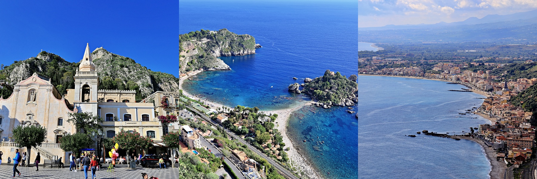 움베르토 1세 거리, 4월 9일 광장, 두오모 광장, 그리스 극장, 마치로 해변과 이솔라 벨라 등